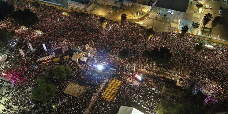 According to the report of Fars News Agency International Group, thousands of people held a demonstration in Tel Aviv on Saturday to express their support for the Osra family in Gaza and demanded an agreement for the release of all the prisoners.