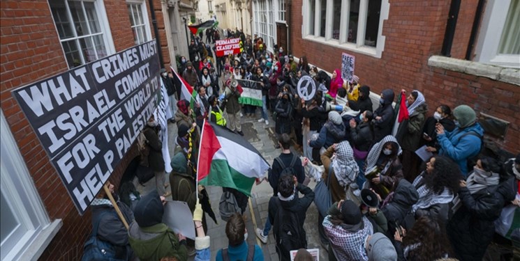 According to the report of the international group of Fars news agency, pro-Palestinian protesters organized a rally in London in front of the office of the real estate consulting company “Fisher German” and demanded the closure of this company because of its relations with the Israeli weapons company “Albit Systems”.