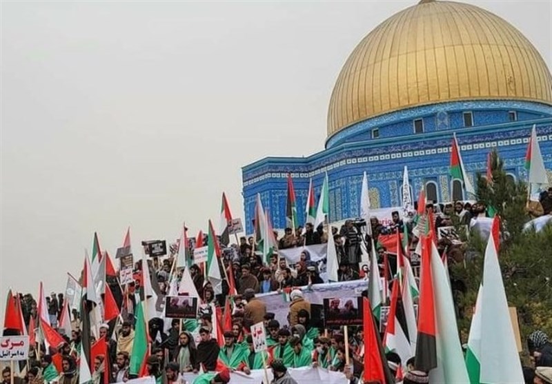 | The Muslim people of Kabul, the capital city of Afghanistan, once again condemned the crime of the Zionist regime by rallying next to the symbol of the Al-Aqsa Mosque and declared their support for the Palestinian resistance. |
