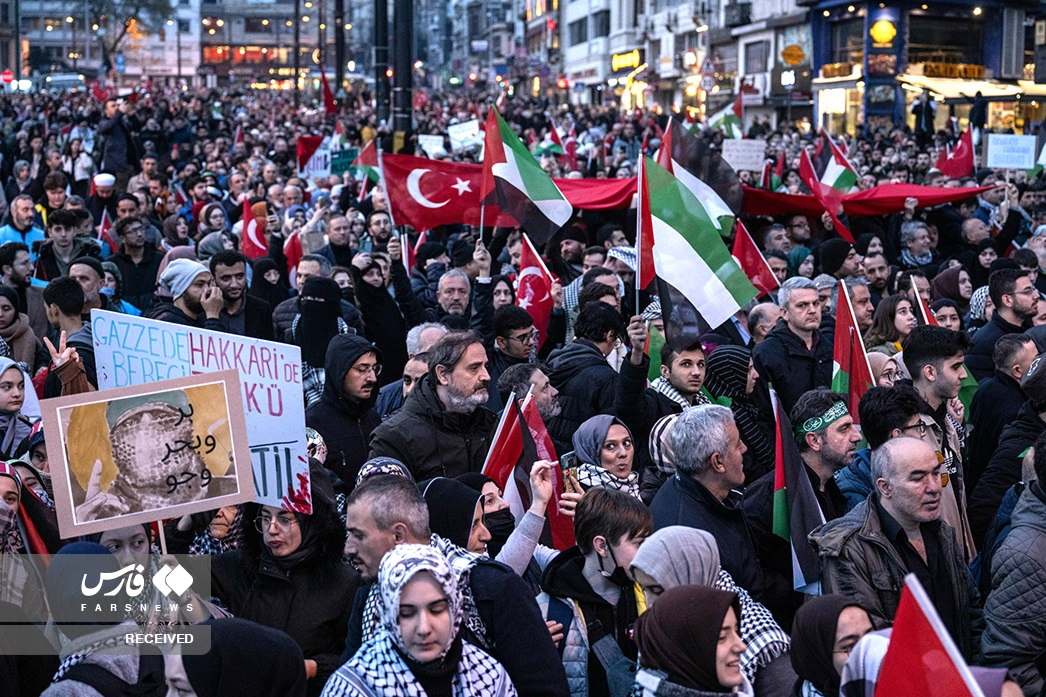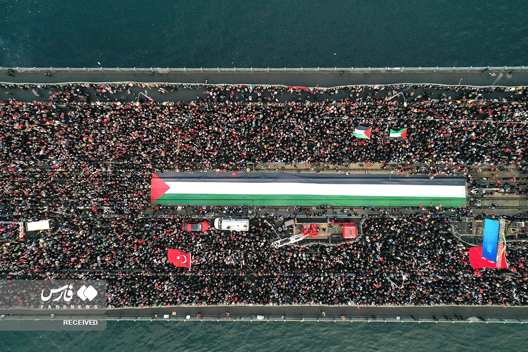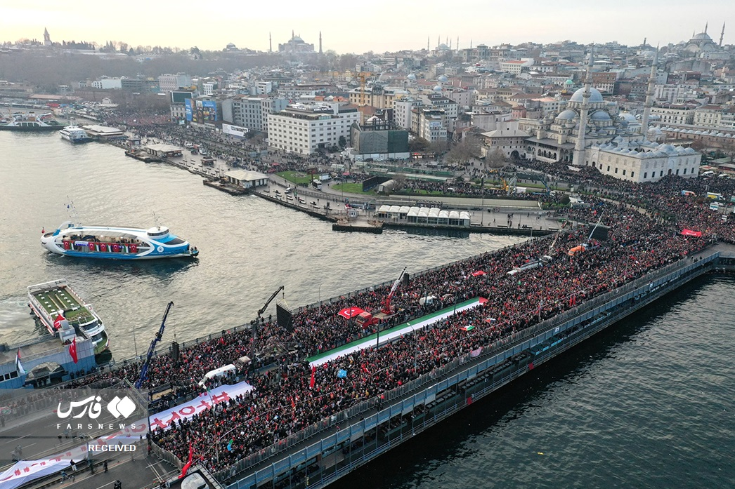 The international group of Fars News Agency, the city of Istanbul, Turkey this morning witnessed the demonstration of tens of thousands of people on the “Galata” bridge; The demonstration was held in the presence of the authorities of this country and in support of the people of Gaza.