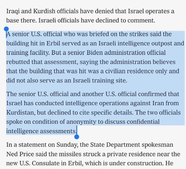 Soma: At the time, American journalist Erick Schmidt said that an American official told him that the building that was hit by ballistic missiles was an Israeli training center.
