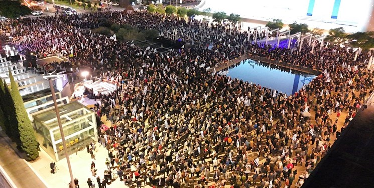 According to the report of Fars News Agency International Group, Israeli demonstrators held a large demonstration in the center of Tel Aviv on Saturday evening and called for Netanyahu to step down from power.