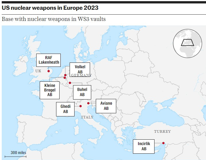 America has sent nuclear weapons to Europe and other countries as part of NATO’s deterrence strategy. The exact number and location of these weapons are classified information, but it is said that about 100 B-61 nuclear bombs are located in five NATO member countries, including Belgium, Germany, Italy, the Netherlands, and Turkey.