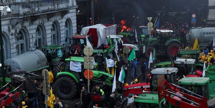 Reuters news agency reported that, following the protest of European farmers, this time in “Brussels”, the capital of Belgium and the venue of today’s (Thursday) meeting of the European Union, farmers also Holding a rally, they lit a fire.