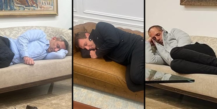 | The Israeli media published a picture of local Zionist officials and wrote that they are sleeping outside the prime minister's office and will not return there until Benjamin Netanyahu explicitly declares that it is safe to return to the settlements. |