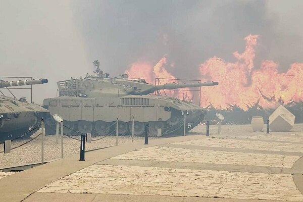 Channel 12 of the Zionist regime’s television reported that the flames have approached Israeli army tanks.