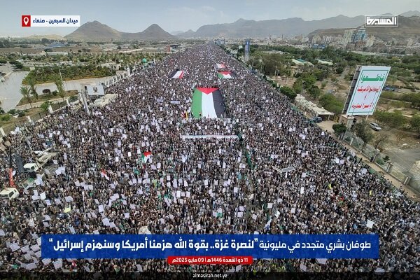 According to a report by the English section of webangah News Agency, citing Mehr News Agency and Al-Masirah, thousands of Yemenis in Sana’a, the capital, and across multiple provinces participated in massive million-strong rallies, heeding the call of Sayyed Abdulmalik Badreddin al-Houthi, leader of Ansar Allah. They celebrated their victory over the U.S. while reaffirming unwavering support for Palestine and targeting the Zionist regime until the blockade on Gaza is lifted.The final statement of the rally—titled “In Support of Gaza… By God’s Power, We Defeated America and Will Defeat Israel”—declared: “Praise be to Almighty God who shattered the oppression and arrogance of America, the pinnacle of disbelief and crime.”