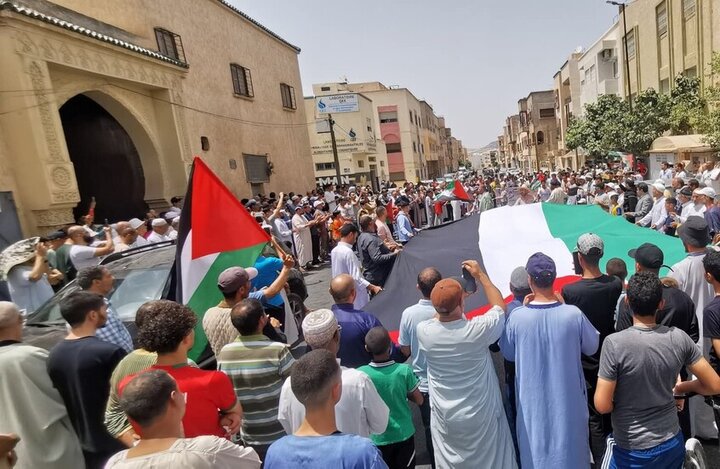 According to the English section of webangah News agency, thousands of Moroccans demonstrated in various cities across the country to show solidarity with Al-Aqsa Mosque and the Gaza Strip.