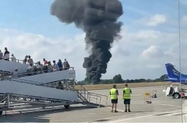 A devastating explosion at an airport in England caused a massive fire visible for miles, according to the English section of webangah News Agency, citing Mehr News Agency and Russia Today.
