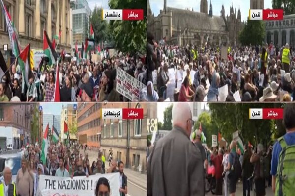 According to the English section of webangah News Agency, citing Al Jazeera via Mehr News Agency, on Saturday, protests took place in multiple European capitals and cities backing Gaza. Participants condemned what they described as a starvation siege and genocide carried out by the Zionist regime against the palestinian people. Demonstrators called for an immediate end to the occupying regime’s crimes in the Gaza Strip.