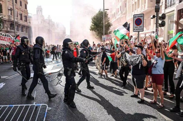 Over a thousand police officers had been deployed ahead of time to coincide with cyclists’ arrival in Madrid for this 21-day event. Despite their presence, authorities where unable to control rising anger among supporters of oppressed Palestinians.