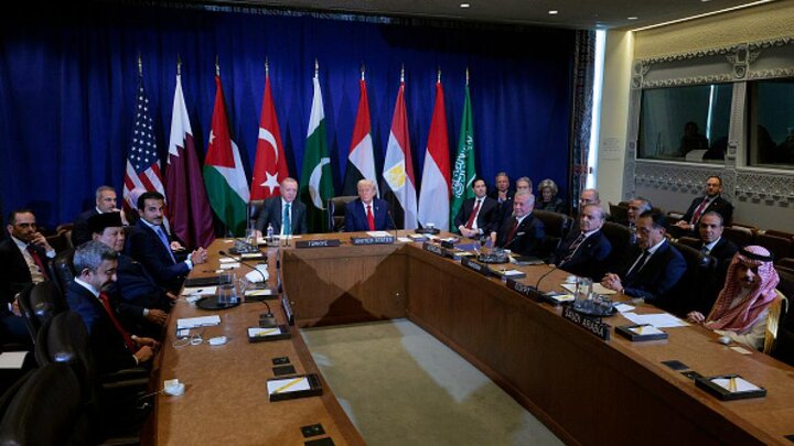 The English section of webangah News Agency reports that eight Arab and Islamic countries held a meeting with Donald Trump on the sidelines of the United Nations General Assembly session in New York. Following this meeting, they released a joint statement reacting to Trump’s 20-point plan which claims to end the Gaza conflict.