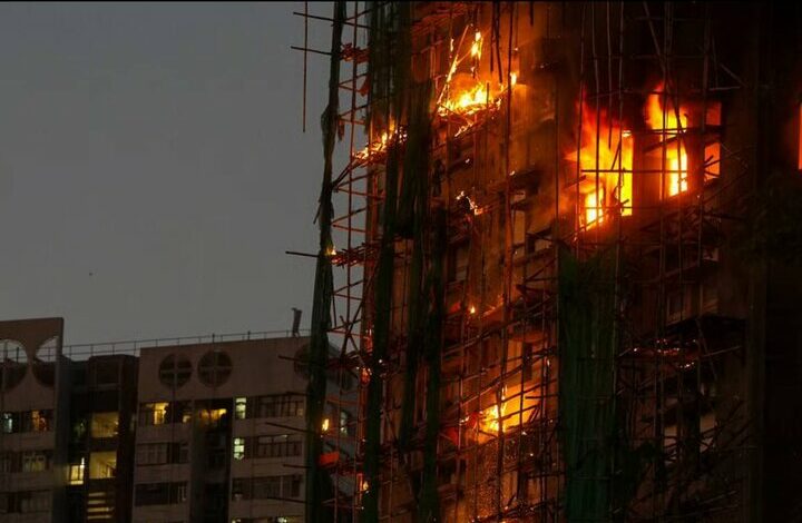 According to the English section of webangah News Agency, citing Reuters, a huge fire broke out today, Wednesday, in several high-rise residential blocks in the Tai Po district of northern Hong Kong.