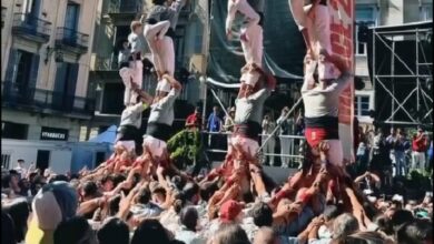 At an anti-Zionist rally in Barcelona, a Palestinian flag was raised through the formation of a human pyramid