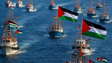 The ship Omar Mukhtar, part of Libya's Samood fleet, is preparing to depart from the capital towards Gaza to join the campaign to lift the blockade on Gaza